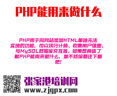 PHP用于向网站添加HTML单独无法实现的功能,可以执行计算、收集用户信息、与MySQL数据库交互等。如果想具体了解PHP能用来做什么,那不妨接着往下看吧!