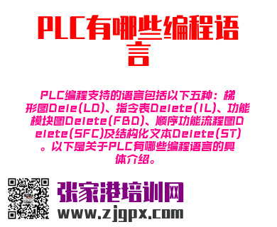 PLC编程支持的语言包括以下五种:梯形图Dele(LD)、指令表Delete(IL)、功能模块图Delete(FBD)、顺序功能流程图Delete(SFC)及结构化文本Delete(ST)。以下是关于PLC有哪些编程语言的具体介绍。