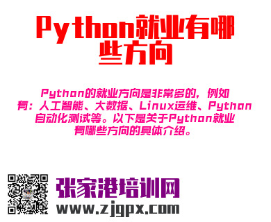 Python的就业方向是非常多的,例如有:人工智能、大数据、Linux运维、Python自动化测试等。以下是关于Python就业有哪些方向的具体介绍。