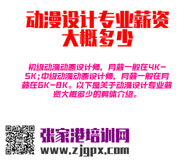 初级动漫动画设计师,月薪一般在4K-5K;中级动漫动画设计师,月薪一般在月薪在6K-8K。以下是关于动漫设计专业薪资大概多少的具体介绍。