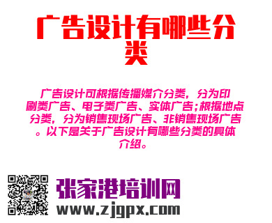 广告设计可根据传播媒介分类,分为印刷类广告、电子类广告、实体广告;根据地点分类,分为销售现场广告、非销售现场广告。以下是关于广告设计有哪些分类的具体介绍。