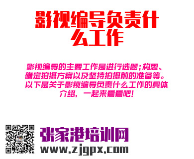 影视编导的主要工作是进行选题;构思、确定拍摄方案以及坚持拍摄前的准备等。以下是关于影视编导负责什么工作的具体介绍,一起来看看吧!
