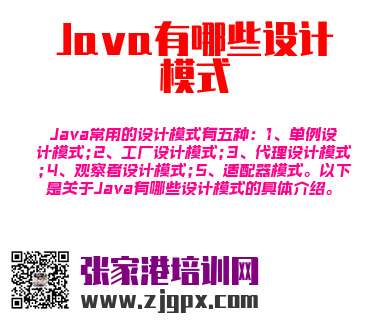 Java常用的设计模式有五种:1、单例设计模式;2、工厂设计模式;3、代理设计模式;4、观察者设计模式;5、适配器模式。以下是关于Java有哪些设计模式的具体介绍。
