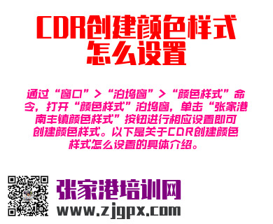 通过“窗口”>“泊坞窗”>“颜色样式”命令,打开“颜色样式”泊坞窗,单击“张家港南丰镇颜色样式”按钮进行相应设置即可创建颜色样式。以下是关于CDR创建颜色样式怎么设置的具体介绍。