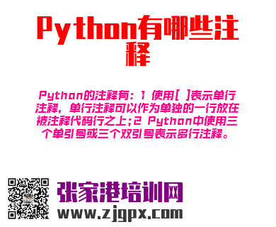 Python的注释有:1 使用[ ]表示单行注释,单行注释可以作为单独的一行放在被注释代码行之上;2 Python中使用三个单引号或三个双引号表示多行注释。