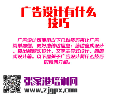 广告设计可使用以下几种技巧来让广告简单易懂,更好地传达信息:落地窗式设计、突出标题式设计、文字主导式设计、圆周式设计等。以下是关于广告设计有什么技巧的具体介绍。