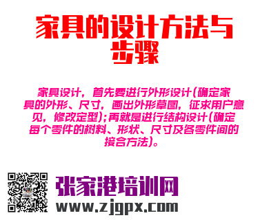 家具设计,首先要进行外形设计(确定家具的外形、尺寸,画出外形草图,征求用户意见,修改定型);再就是进行结构设计(确定每个零件的树料、形状、尺寸及各零件间的接合方法)。