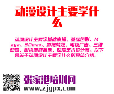 动漫设计主要学基础素描、基础色彩、Maya、3Dmax、影视特效、电视广告、三维动画、影视后期合成、动漫艺术设计等。以下是关于动漫设计主要学什么的具体介绍。