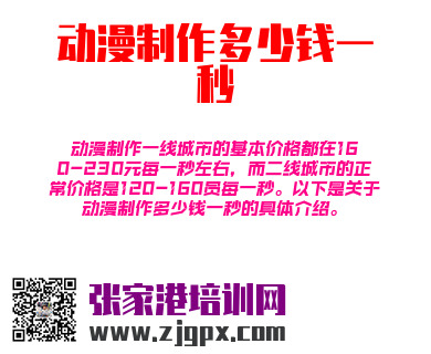 动漫制作一线城市的基本价格都在160-230元每一秒左右,而二线城市的正常价格是120-160员每一秒。以下是关于动漫制作多少钱一秒的具体介绍。