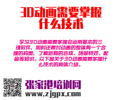 学习3D动画需要掌握会运用基本的三维软件,同时还要对动画的整体有一个合理的构思,了解后期的合成、场景特效、配音等知识。以下是关于3D动画需要掌握什么技术的具体介绍。