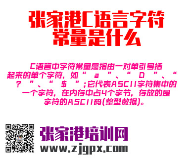 C语言中字符常量是指由一对单引号括起来的单个字符,如“ a ”、“ D ”、“ ? ”、“ $ ”;它代表ASCII字符集中的一个字符,在内存中占4个字节,存放的是字符的ASCII码(整型数据)。