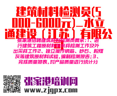 张家港招聘建筑材料检测员要求:1、进行建筑工程原材料等来样检测工作及外出采样工作2、独立操作钢筋、砂石、粉煤灰等建筑原材料试验,编制检测报告;3、完成质量报表,对产品质量进行统计分