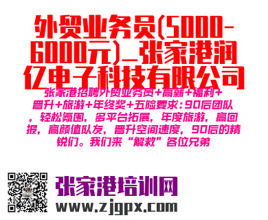 张家港招聘外贸业务员+高薪+福利+晋升+旅游+年终奖+五险要求:90后团队,轻松氛围,多平台拓展,年度旅游,高回报,高颜值队友,晋升空间速度,90后的精锐们。我们来“解救”各位兄弟