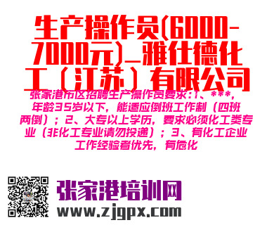 张家港市区招聘生产操作员要求:1、***,年龄35岁以下,能适应倒班工作制(四班两倒);2、大专以上学历,要求必须化工类专业(非化工专业请勿投递);3、有化工企业工作经验者优先,有危化