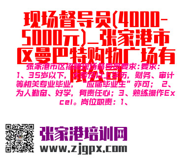 张家港市区招聘现场督导员要求:要求:1、35岁以下,大专及以上学历,财务、审计等相关专业毕业,“应届毕业生”亦可; 2、为人勤奋、好学,有责任心;3、熟练操作Excel。岗位职责:1、